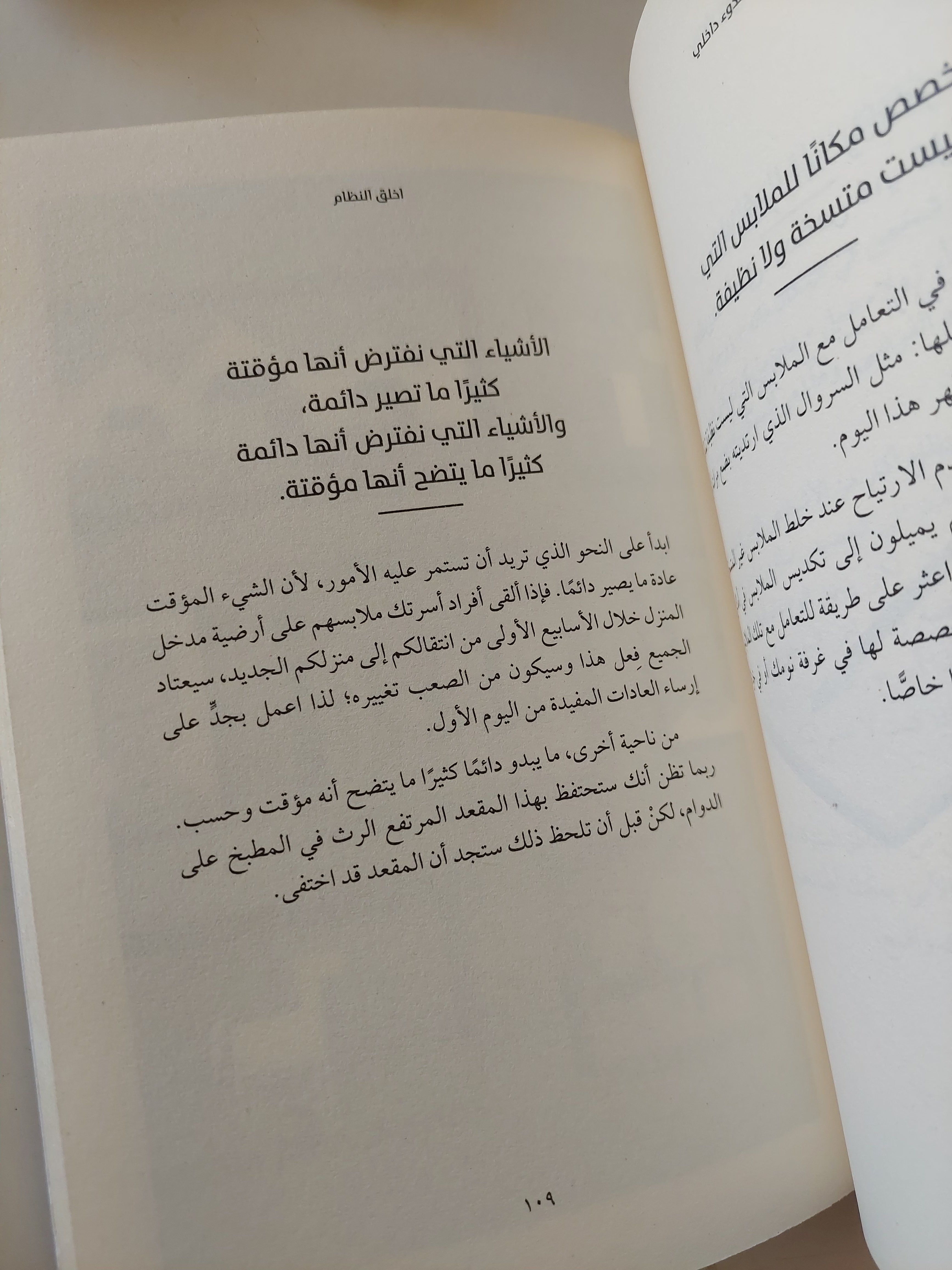 تقترح «روبين»، بأسلوب مرح وبفكرة واضحة عما هو واقعي لمعظم الأشخاص، عشرات من النصائح والحيل القابلة للتطبيق من أجل بناء بيئة أكثر هدوءًا وتنظيمًا، منها: