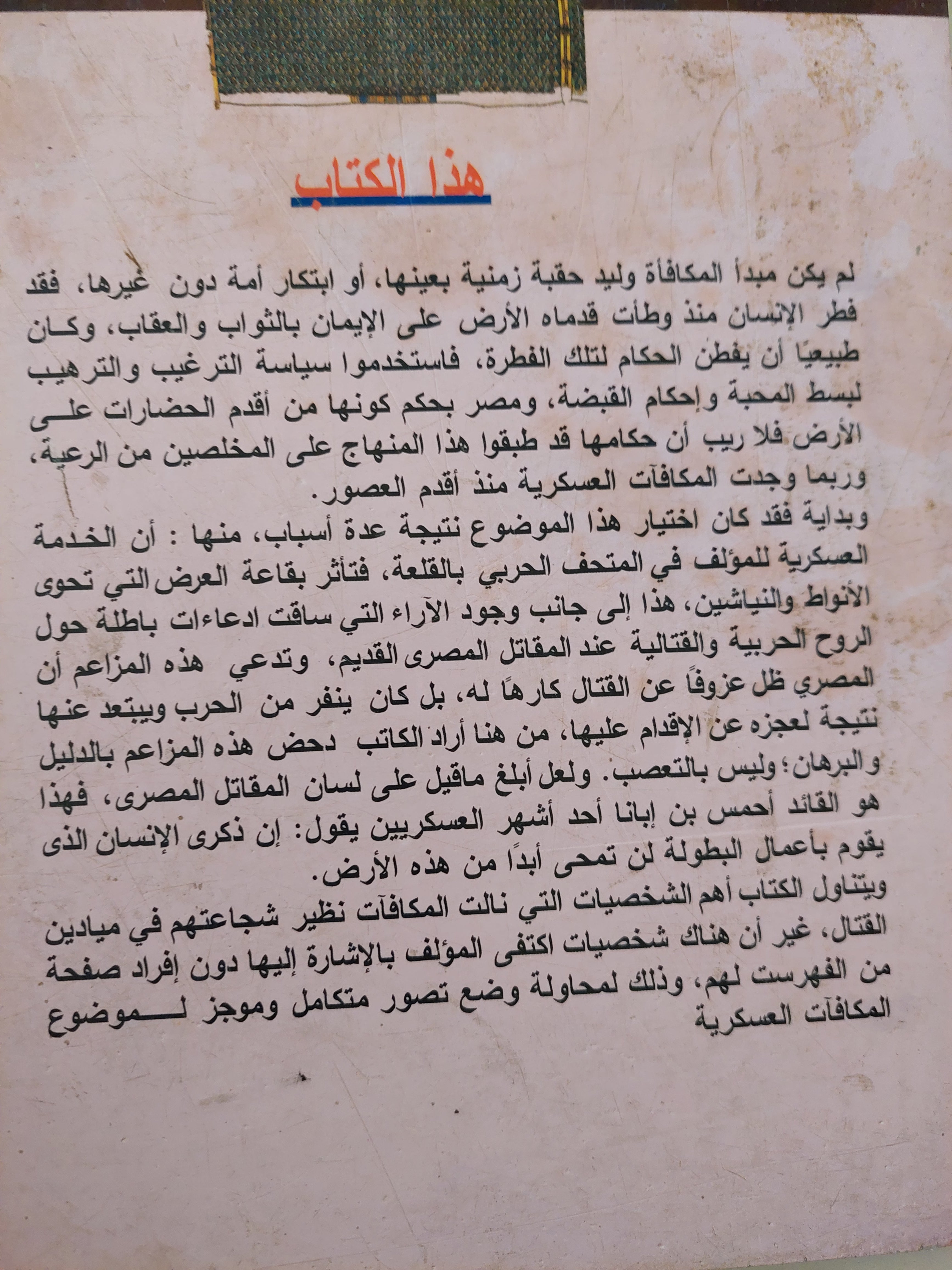 كتاب "الأوسمة العسكرية الملكية في مصر الفرعونية" من تأليف الأستاذ الدكتور عبد الله عبد الرازق عبد الحميد، أستاذ الآثار والحضارة المصرية القديمة. يستعرض الكتاب تاريخ وتطور الأوسمة والمكافآت العسكرية في مصر القديمة، مسلطًا الضوء على أنواعها وأهميتها في تكريم المتميزين من العسكريين والمدنيين. كما يتناول الكتاب الشخصيات التي حظيت بهذه الأوسمة، مدعومًا بالصور والشرح المبسط. صدر الكتاب عن مكتبة مدبولي ، ويقع في 364 صفحة.