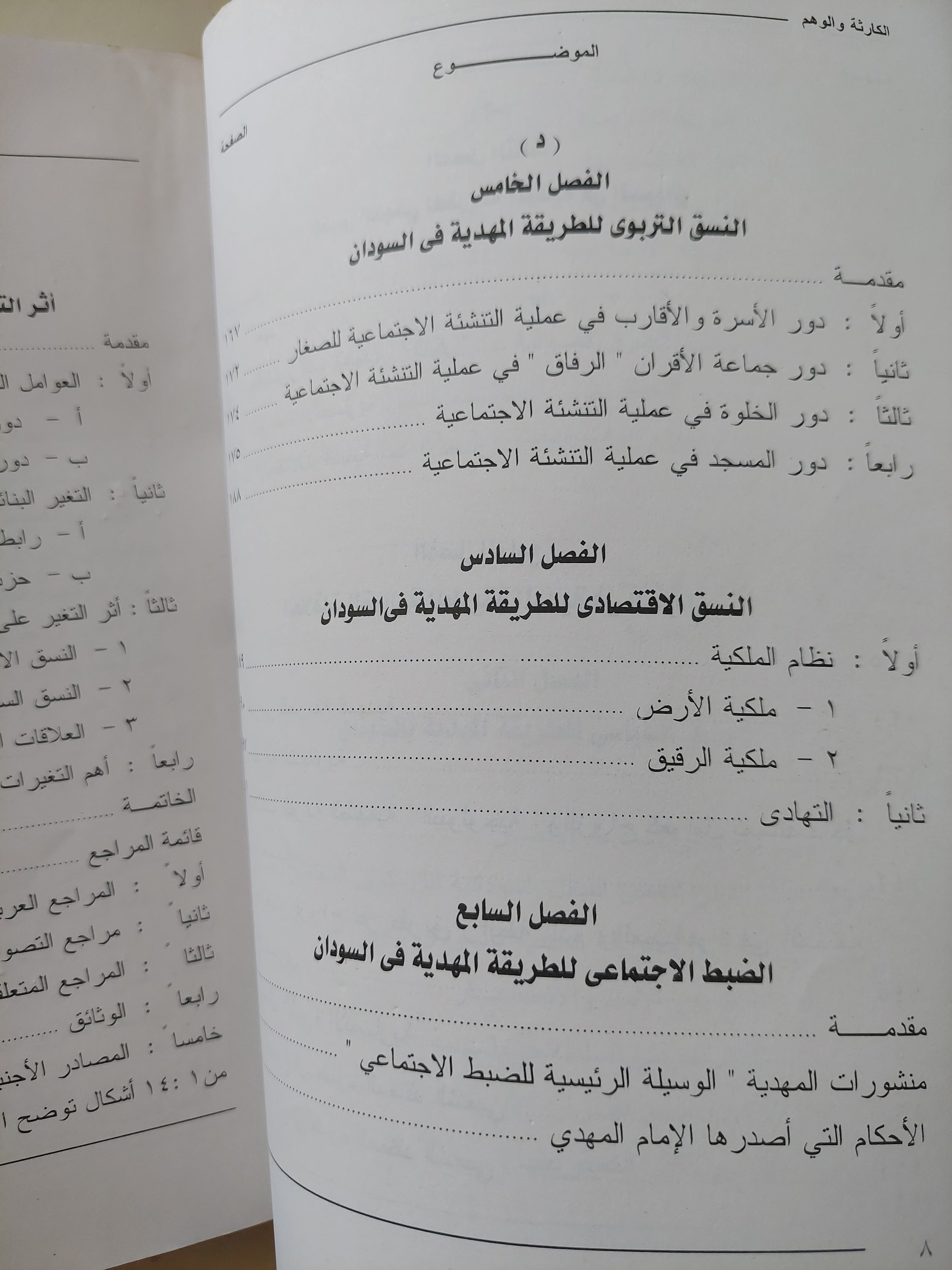 تتناول الكاتبة الحركة المهدية ليس فقط كواقعة سياسية، بل كمشروع اجتماعي – ثقافي كامل. تبدأ بتحليل المفاهيم الصوفية مثل البيعة، الراتب، الحضرة، والولاية، مرورًا بدور الإمام محمد أحمد المهدي في توحيد القبائل وطي الانقسامات التقليدية لصالح بناء دولة مركزية ذات طابع روحي واجتماعي قوي، تكسر التمايز القَبَلي وتحوّل القبائل إلى كيانٍ موحّد من الأنصار