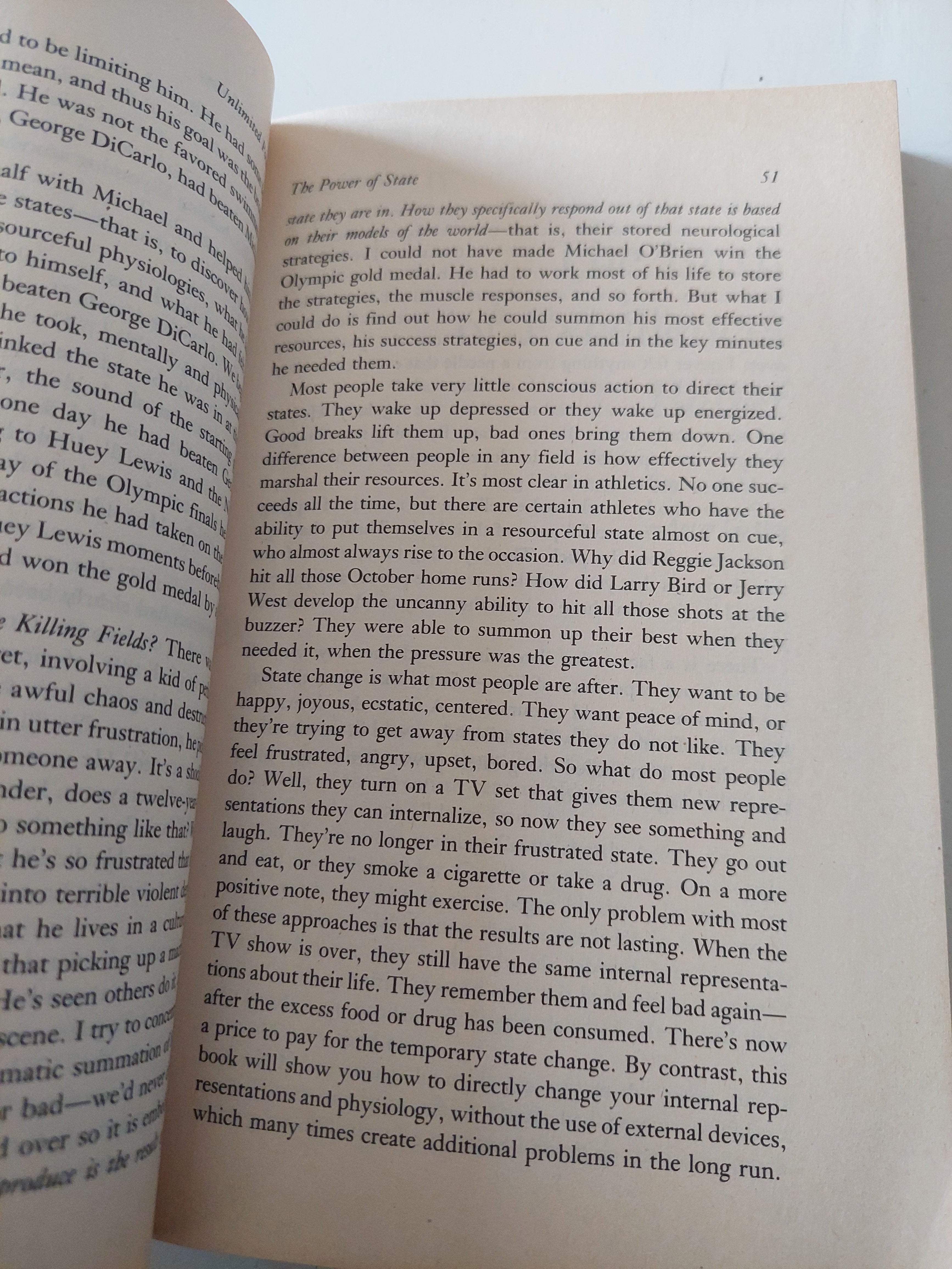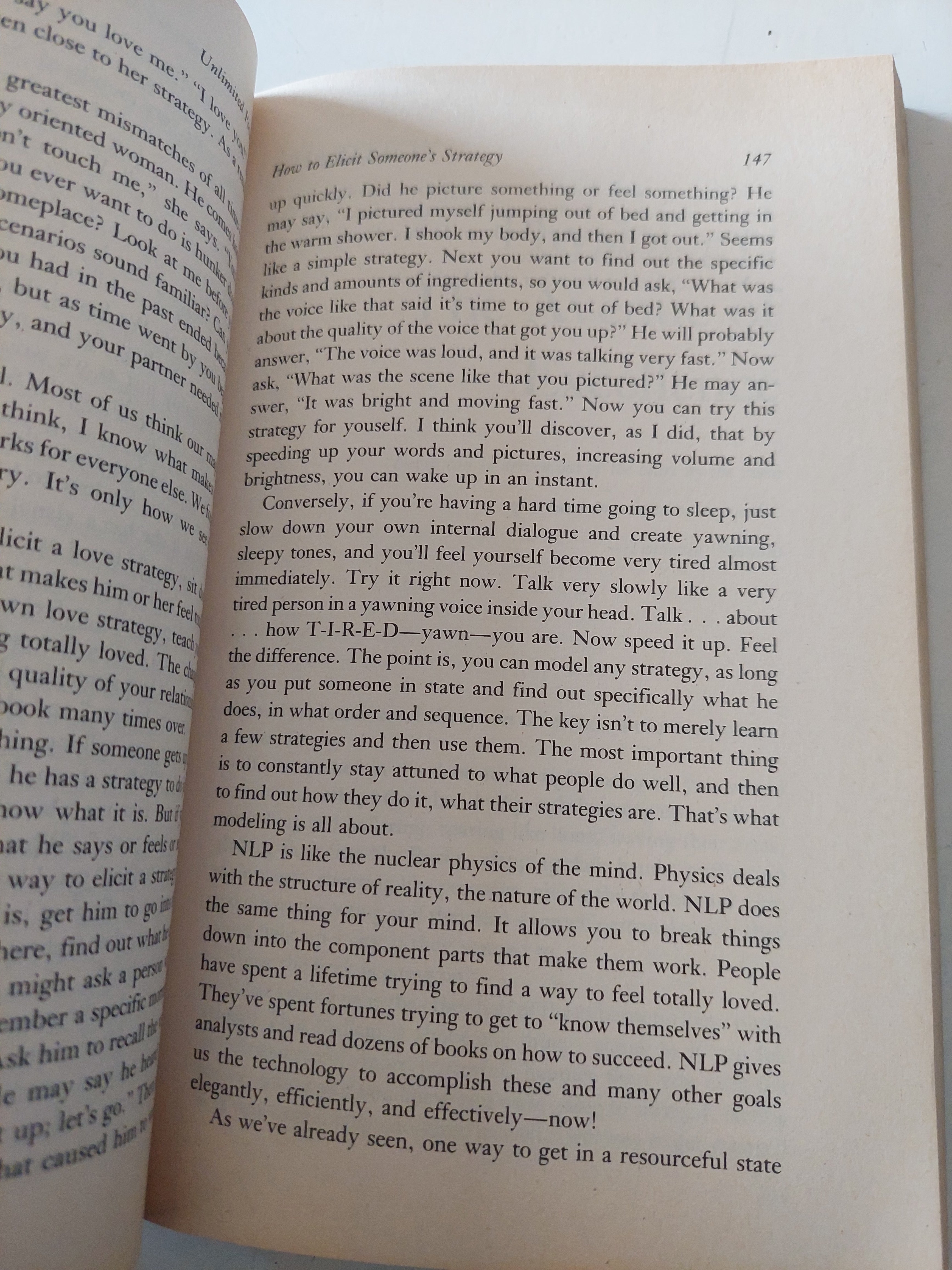 من بين ما يتناوله: كيفية تحديد ما تريده فعلاً، الأكاذيب السبع للنجاح، أساليب إعادة برمجة العقل للتغلّب على المخاوف، طريقة بناء علاقة فورية (الـ “رابورت”) مع الآخرين، استنساخ نجاح الغير، الخمس مفاتيح للثروة والسعادة.
