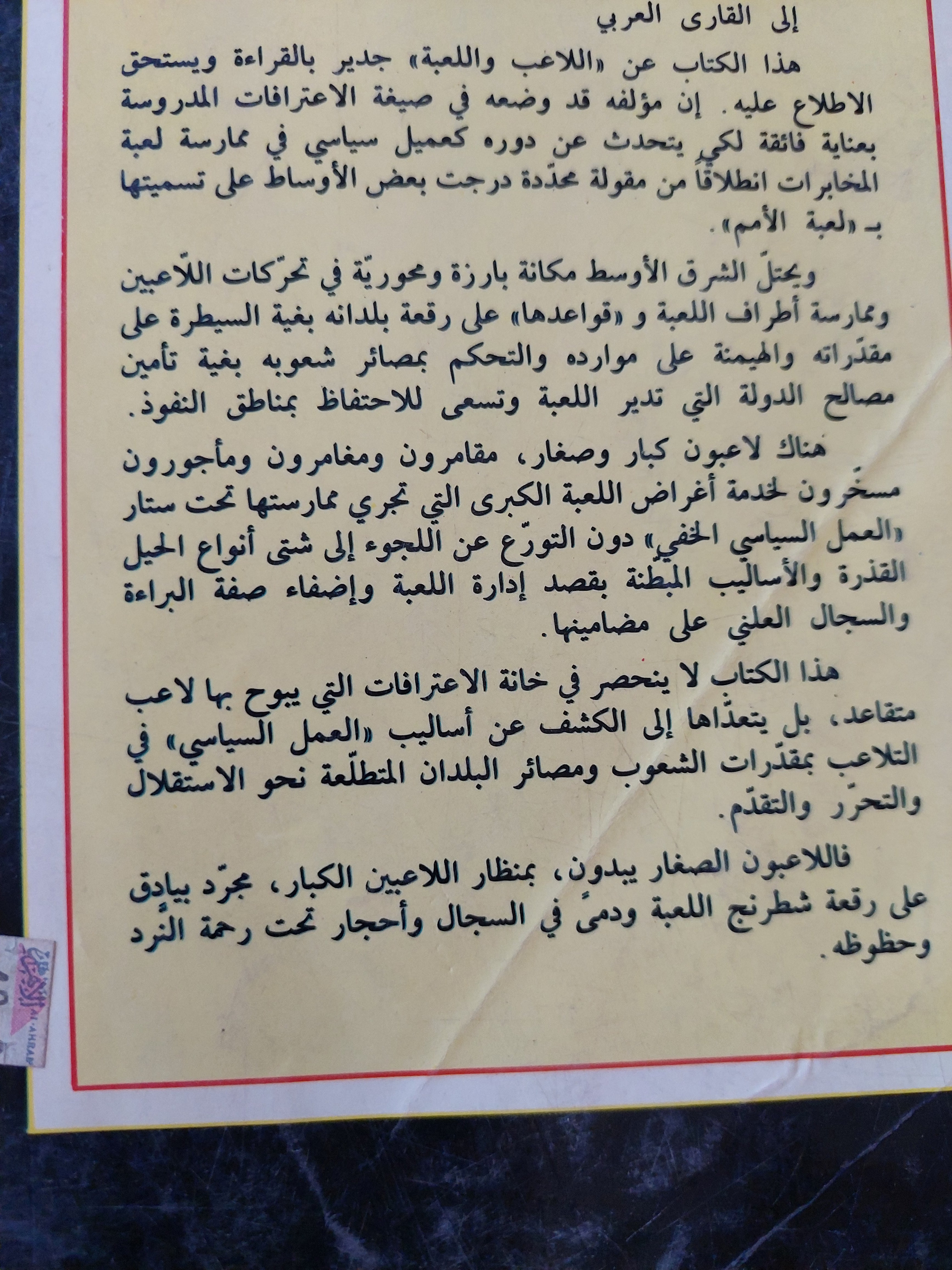 يقدّم كوبلاند في هذا العمل سرداً مباشراً لأدوار التجسس والتدخل السياسي الأميركية في فترات حاسمة من التاريخ، ويتضمّن مذكرات وتحليلات لمهام سرّية، وأمثلة على كيفية تحرّك أجهزة الاستخبارات في ساحات النفوذ والمواجهة.