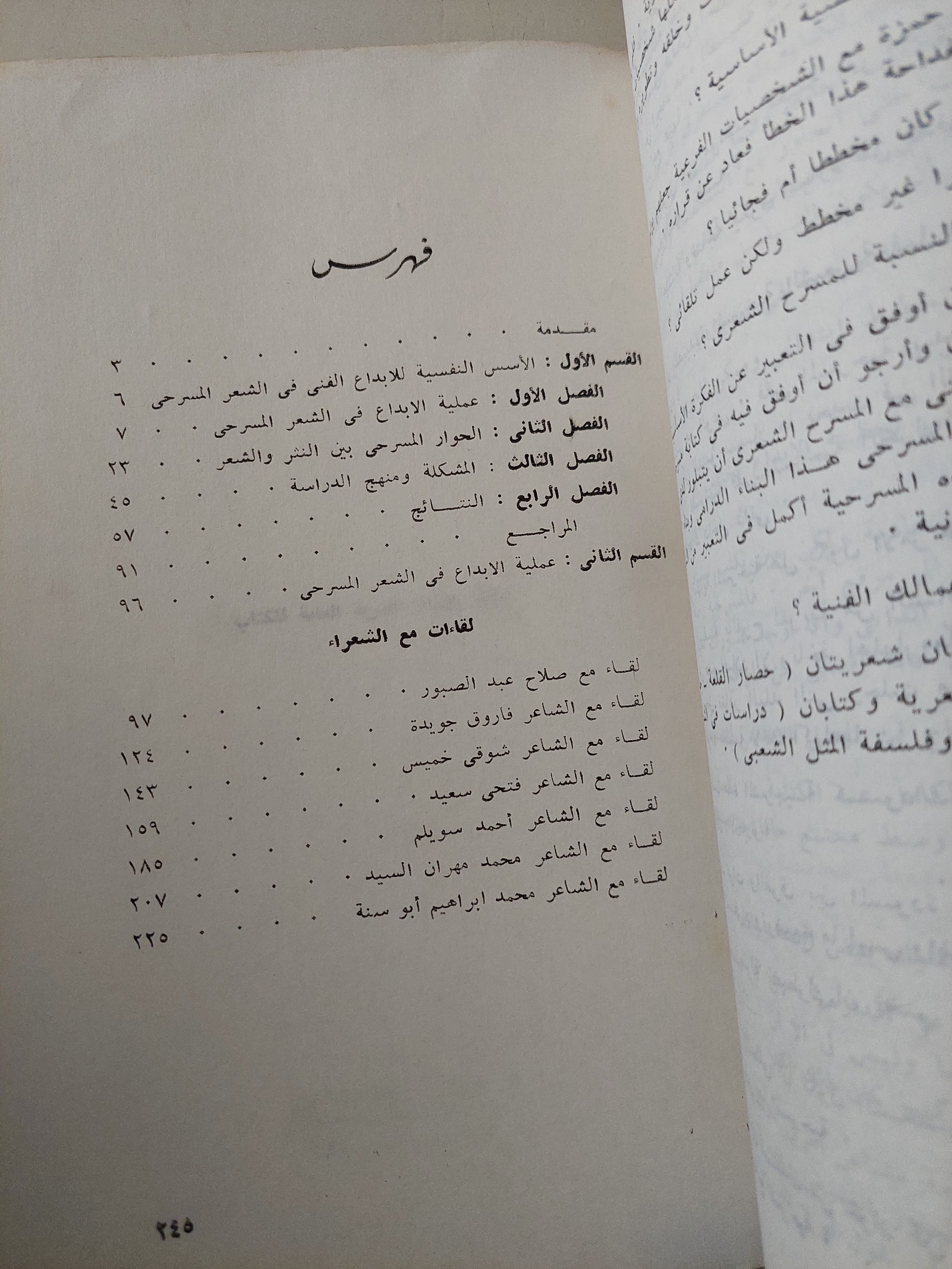 القسم الثاني: يتضمن لقاءات مع عدد من الشعراء المعاصرين الذين كتبوا المسرحيات الشعرية. أجرى المؤلف حوارات معهم حول تجاربهم، واستخدم إجاباتهم كمواد أساسية لبناء نتائج دراسته بعد تحليلها.