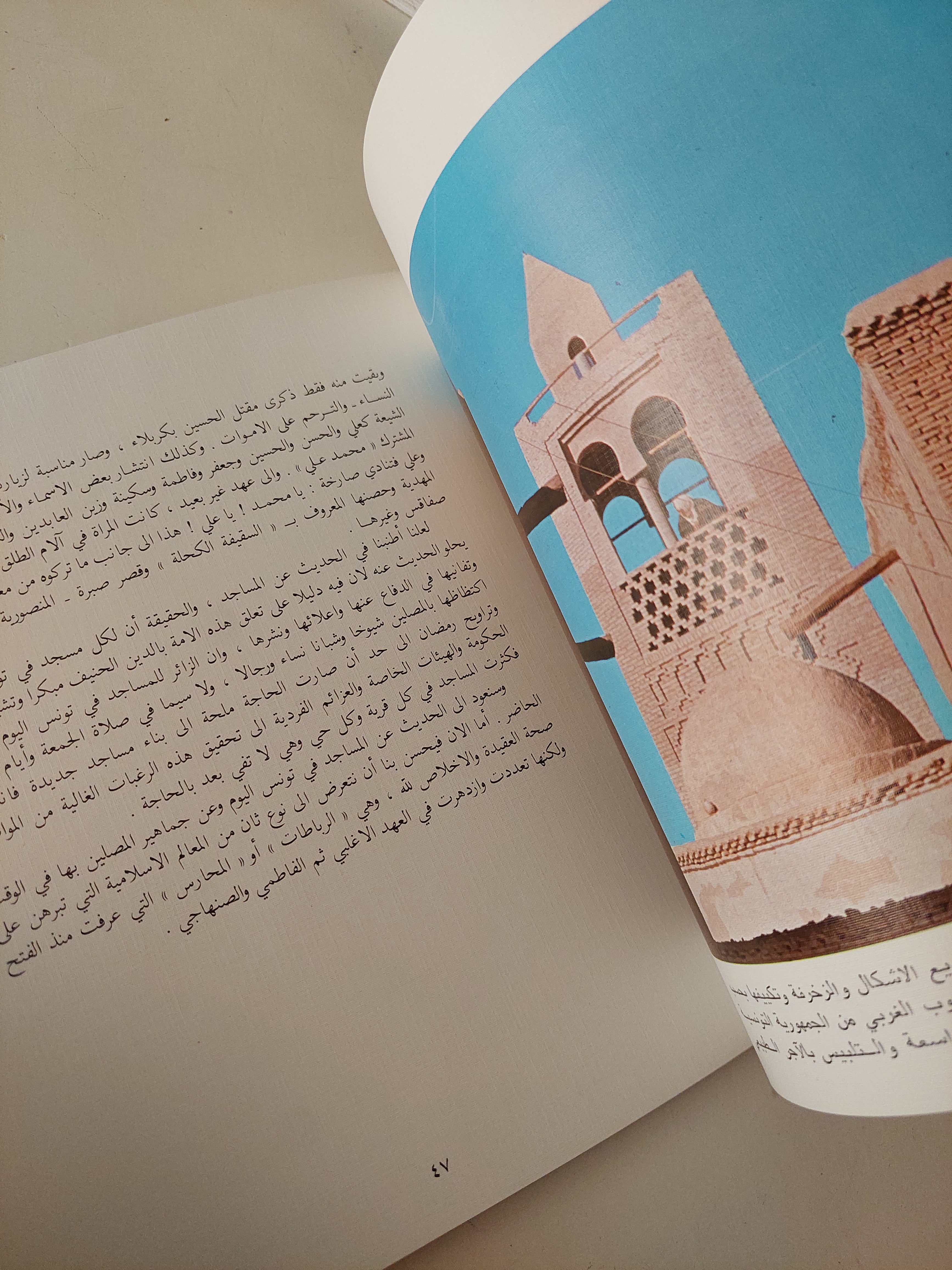 العمل مدعّم بصور ملوّنة عالية الجودة توثّق المساجد العريقة مثل جامع الزيتونة، والمدارس القرآنية، والتحف الخزفية والمنسوجات والزخارف الخطية، كما يعرض مظاهر الحياة اليومية في المدن التونسية القديمة التي ما تزال تنبض بروح الحضارة الإسلامية.