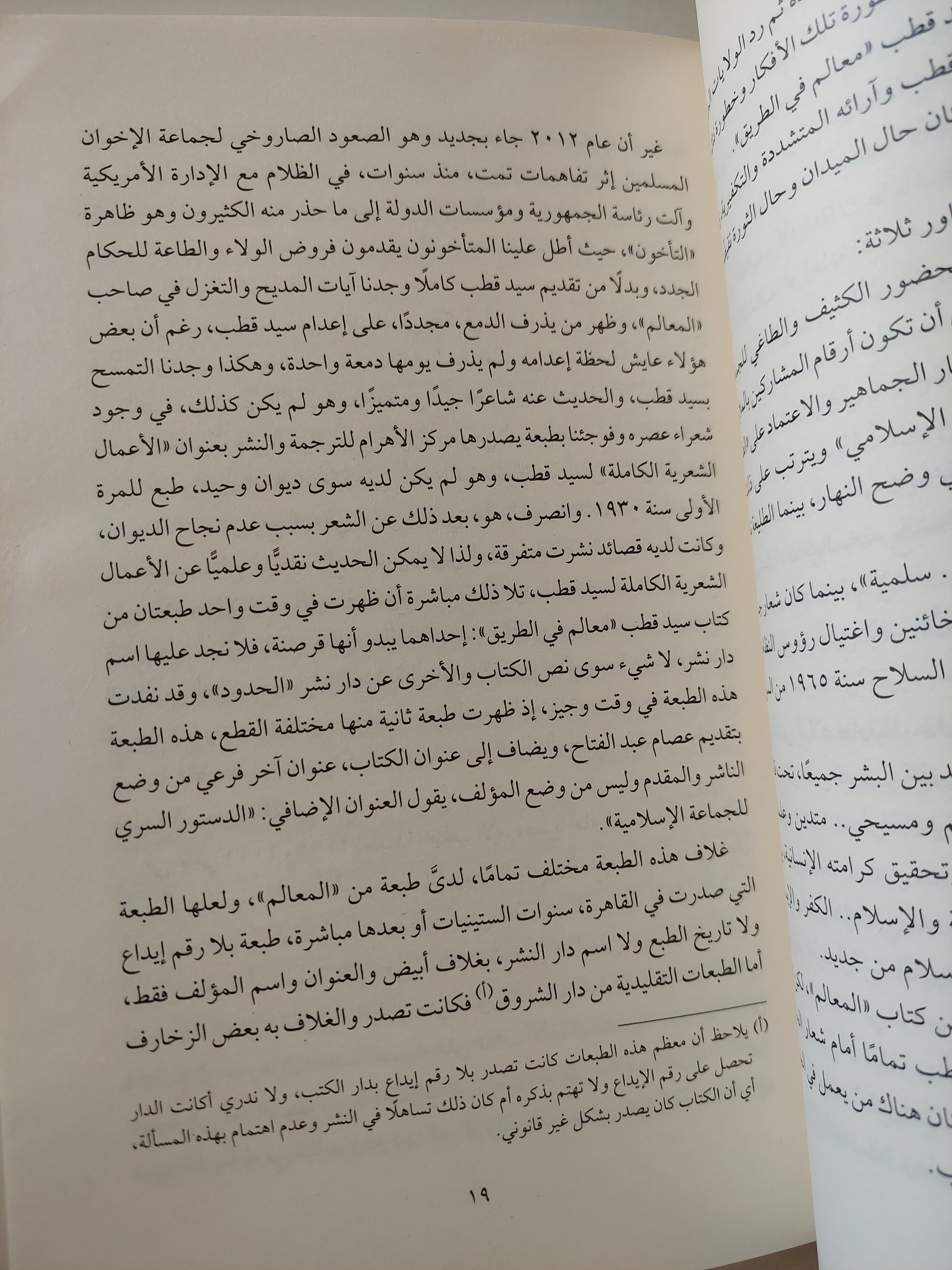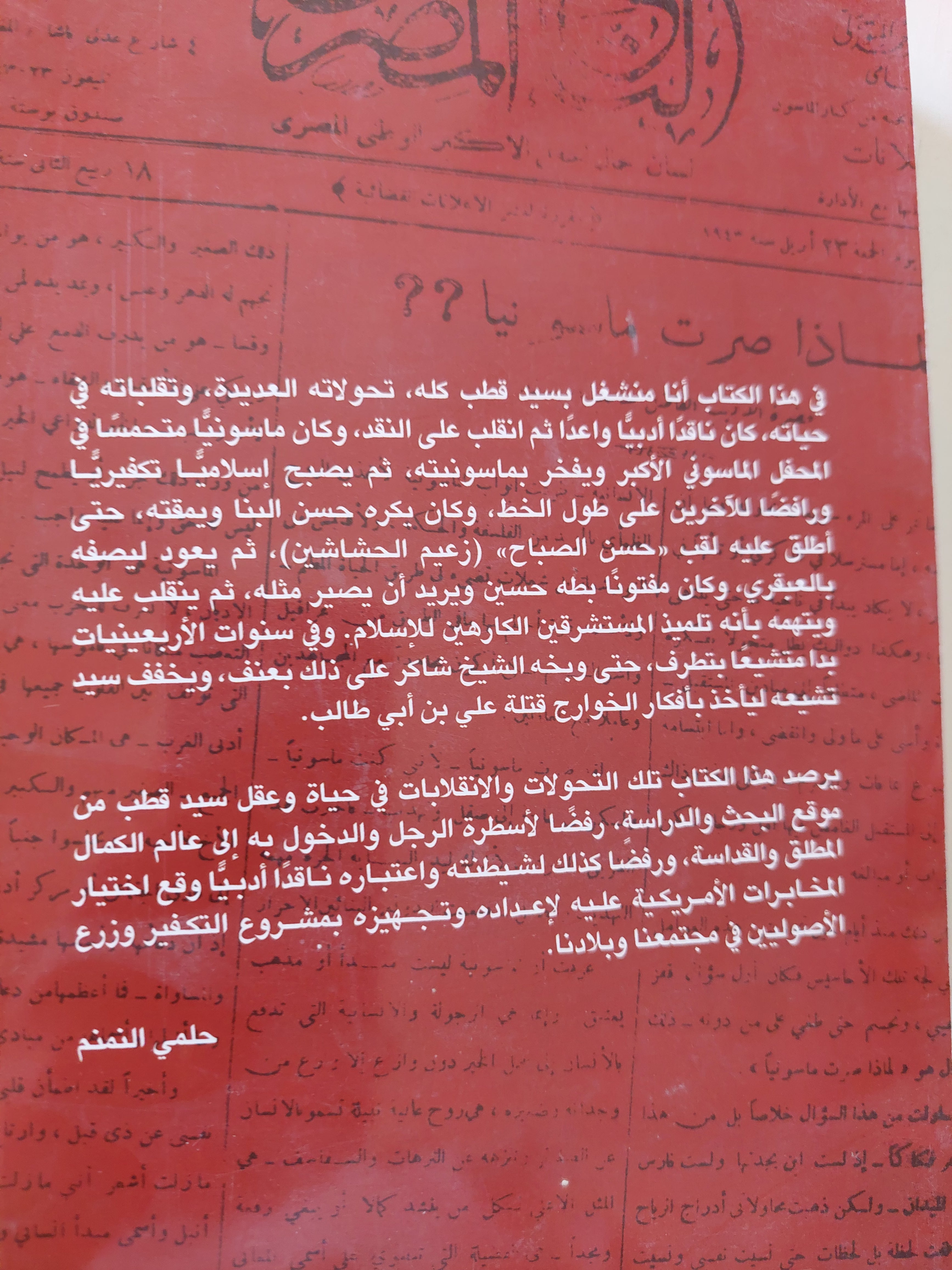في هذا الكتاب أنا منشغل بسيد قطب كله، تحولاته العديدة، وتقلباته في حياته الخاصة، كان ناقدًا أدبيًّا واعدًا ثم انقلب على النقد، وكان ماسونيًّا متحمسًا في المحفل الماسوني الأكبر ويفخر بماسونيته ثم يصبح إسلاميًّا تكفيريًّا ورافضًا للآخرين على طول الخط، وكان يكره حسن البنا ويمقته، حتى أطلق عليه لقب «حسن الصباح»، زعيم الحشاشين، ثم يعود ليصفه بالعبقري، وكان مفتونًا بطه حسين ويريد أن يصير مثله، ثم ينقلب عليه ويتهمه بأنه تلميذ المستشرقين الكارهين للإسلام. وفي سنوات الأربعينيات بدا متشيعًا بتطرف، حتى وبخه الشيخ شاكر على ذلك بعنف، ويخفف سيد تشيعه ليأخذ بأفكار الخوارج قتلة علي بن أبي طالب. يرصد هذا الكتاب تلك التحولات والانقلابات في حياة وعقل سيد قطب من موقع البحث والدراسة، رفضًا لأسطرة الرجل والدخول به إلى عالم الكمال المطلق والقداسة، ورفضًا كذلك لشيطنته واعتباره ناقدًا أدبيًّا وقع اختيار المخابرات الأمريكية عليه لإعداده وتجهيزه بمشروع التكفير وزرع الأصوليين في مجتمعنا وبلادنا.
