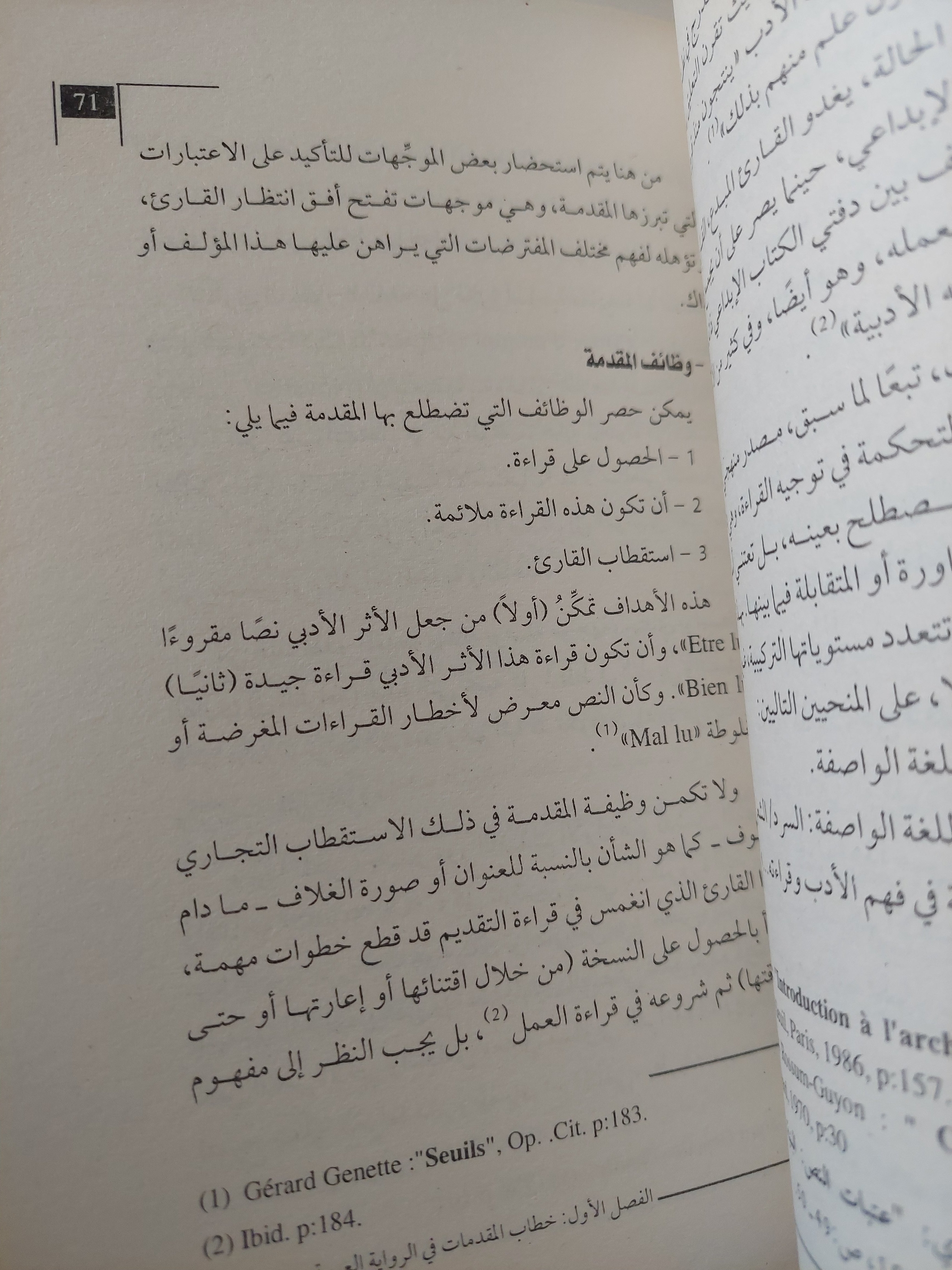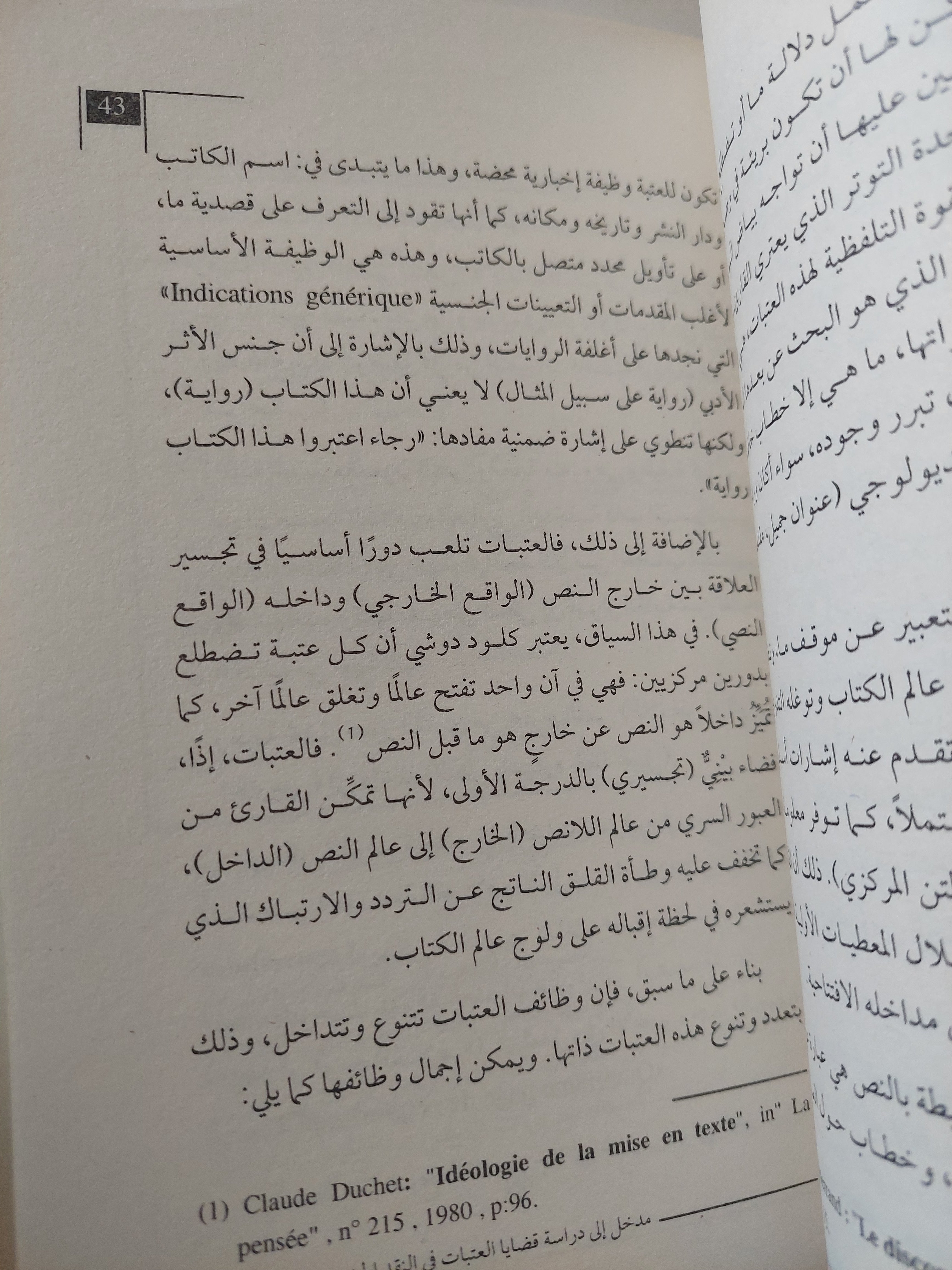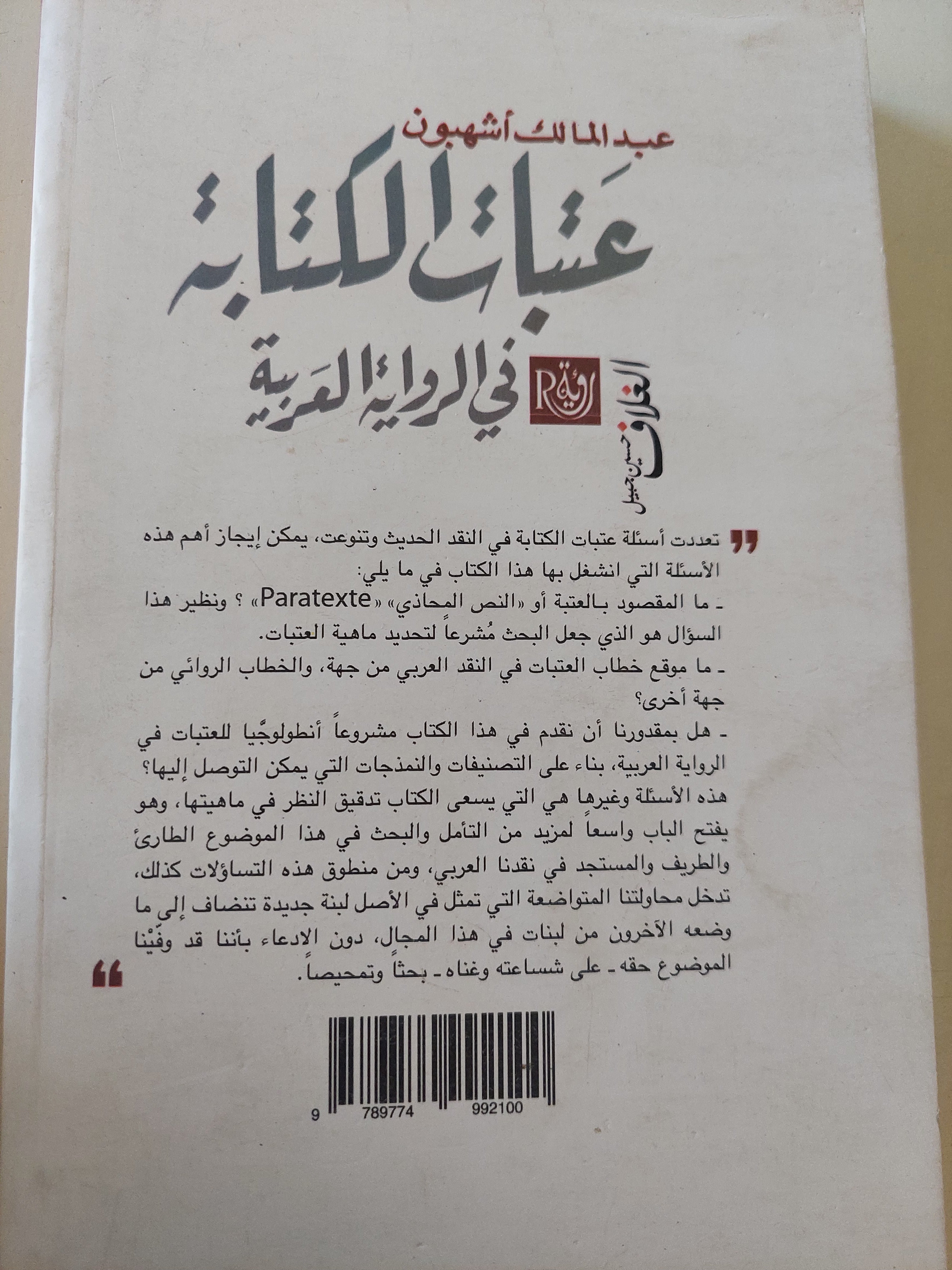تعددت أسئلة عتبات الكتابة في النقد الحديث وتنوعت، يمكن إيجاز أهم هذه الأسئلة التي انشغل بها هذا الكتاب في ما يلي: – ما المقصود بالعتبة أو « النص المحاذي » «Paratexte» ؟ ونظير هذا السؤال هو الذي جعل البحث مشرعا لتحديد ماهية العتبات. ـ ما موقع خطاب العتبات في النقد العربي من جهة، والخطاب الروائي من جهة أخرى ؟ –