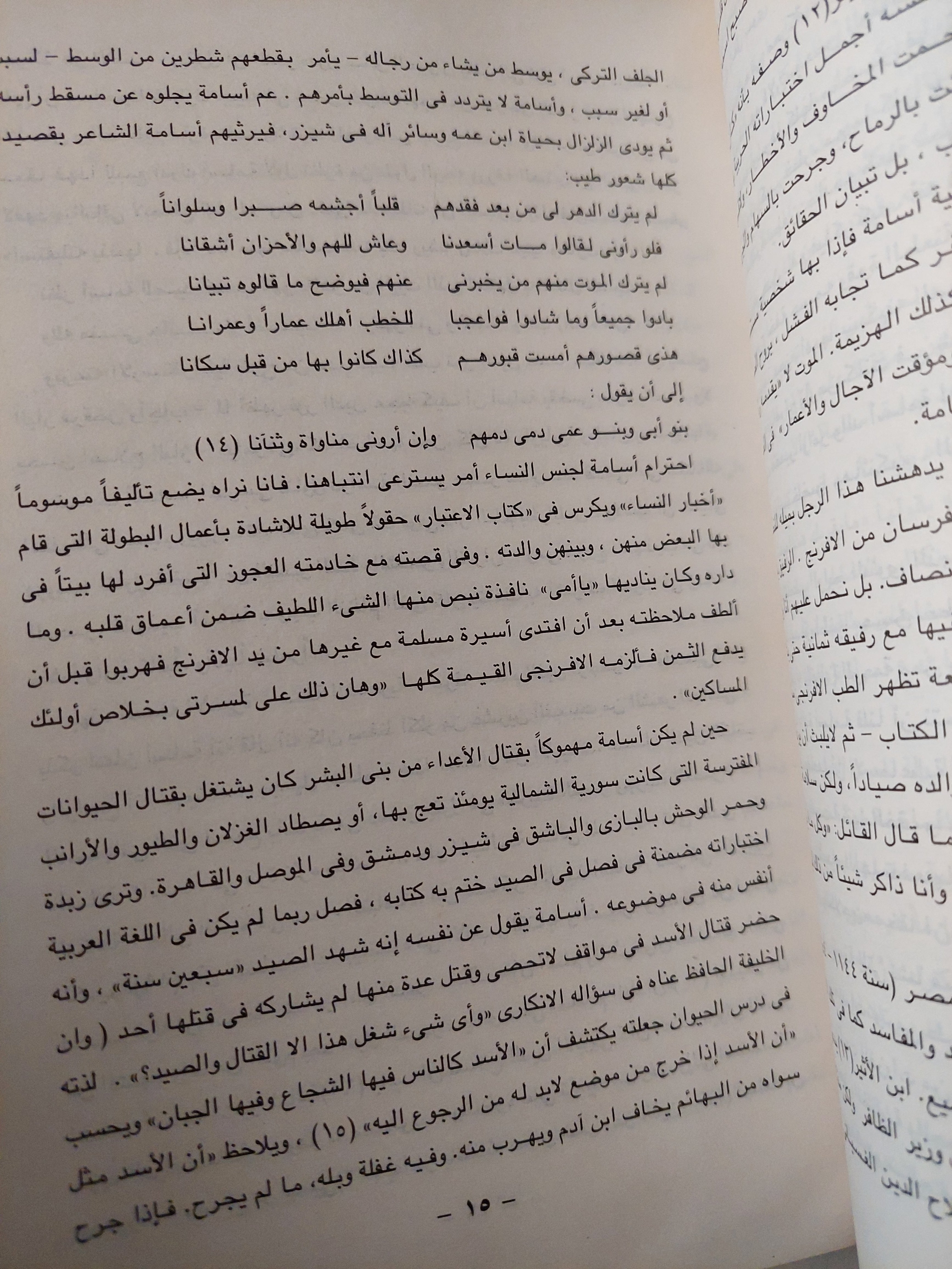 أسامة بن منقذ (1095–1188م) كان فارسًا وأديبًا وشاعرًا من أسرة منقذية حاكمة في شيزر بسوريا، عاش حياة مليئة بالمغامرات، فتنقّل بين بلاطات الملوك في الشام ومصر، وخالط المسلمين والفرنجة على السواء، فدوّن في كتابه مشاهداته وتأملاته حول الحرب والسياسة، والعلاقات الإنسانية، والفروسية، والدين، والعادات الاجتماعية.