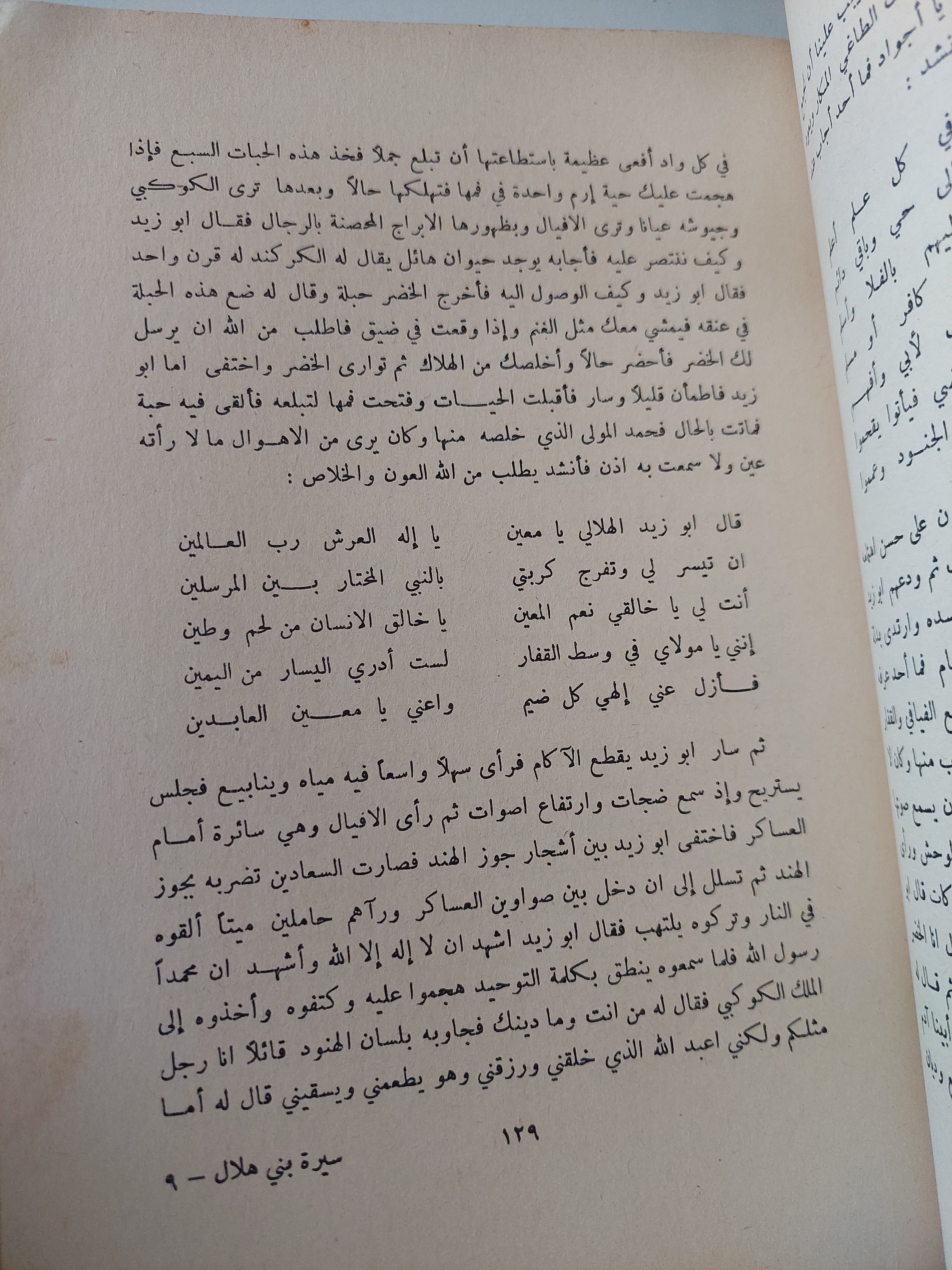 هذا الكتاب يحكي قصة هلال جد بني هلال مصورا مقاطعه وكلامه ب “قال الراوي”، وهو يجمع أكثر من عشرين قصة يحكيها عن بني هلال وبطولاتهم في الغزو وشجاعتهم في ملاقاة الأعداء والمحافظة على الجاه والحصول على ما يشاؤون. وهذه الحكايات وضعت بأسلوب السجع بشكل يهيج القارئ ويثير انتباهه ويخللها بين الحين والآخر ما يشبه الشعر، وهو بين العامي والفصيح. وفيه وصف الكرم، وحوادث الأفراح والزواج.