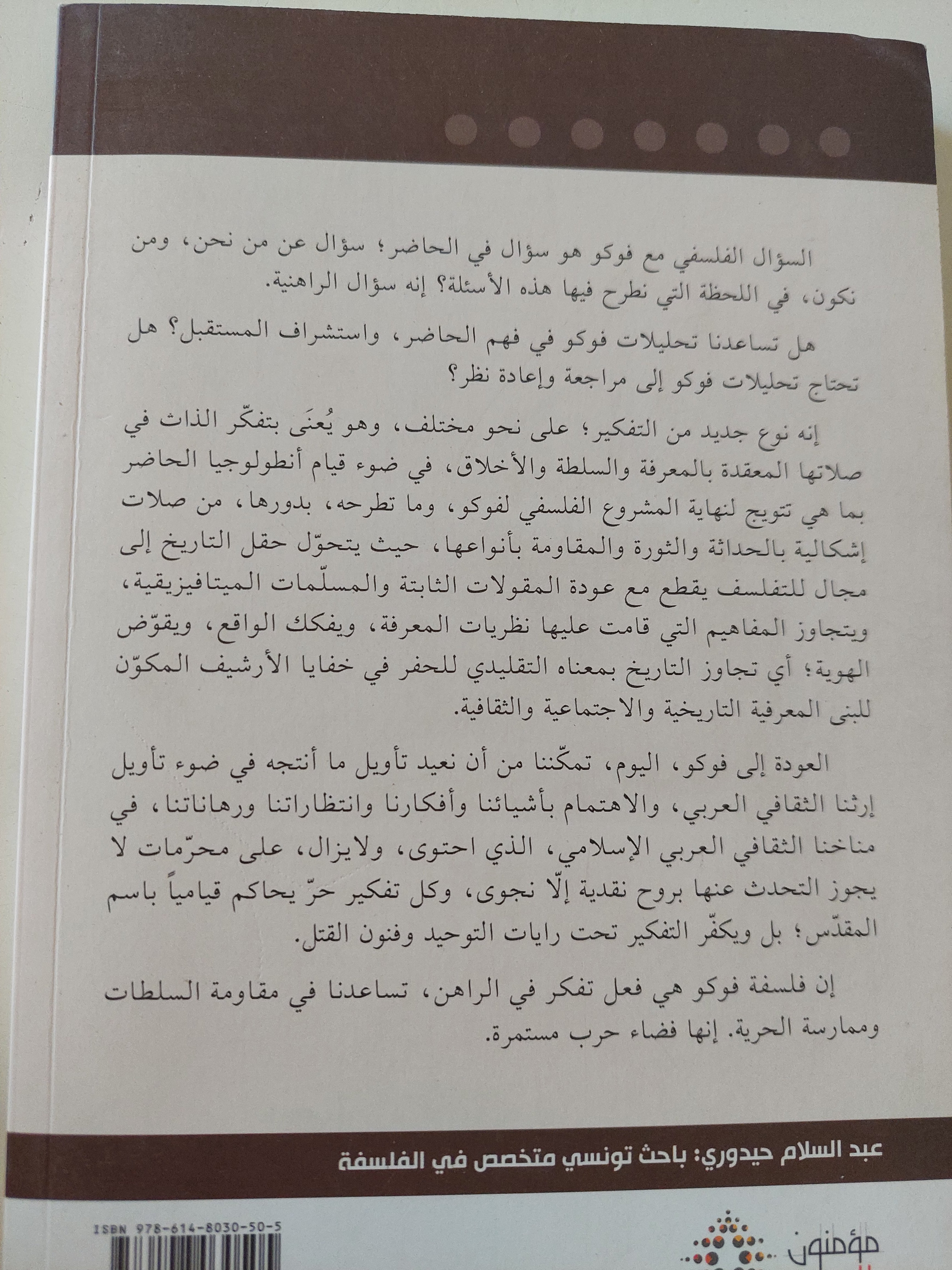 إنه نوع جديد من التفكير؛ على نحو مختلف، وهو يُعنَى بتفكّر الذات في صلاتها المعقدة بالمعرفة والسلطة والأخلاق، في ضوء قيام أنطولوجيا الحاضر بما هي تتويج لنهاية المشروع الفلسفي لفوكو، وما تطرحه، بدورها، من صلات إشكالية بالحداثة والثورة والمقاومة بأنواعها، حيث يتحوّل حقل التاريخ إلى مجال للتفلسف يقطع مع عودة المقولات الثابتة والمسلّمات الميتافيزيقية، ويتجاوز المفاهيم التي قامت عليها نظريات المعرفة، ويفكك الواقع، ويقوّض الهوية؛ أي تجاوز التاريخ بمعناه التقليدي للحفر في خفايا الأرشيف المكوّن للبنى المعرفية التاريخية والإجتماعية والثقافية.