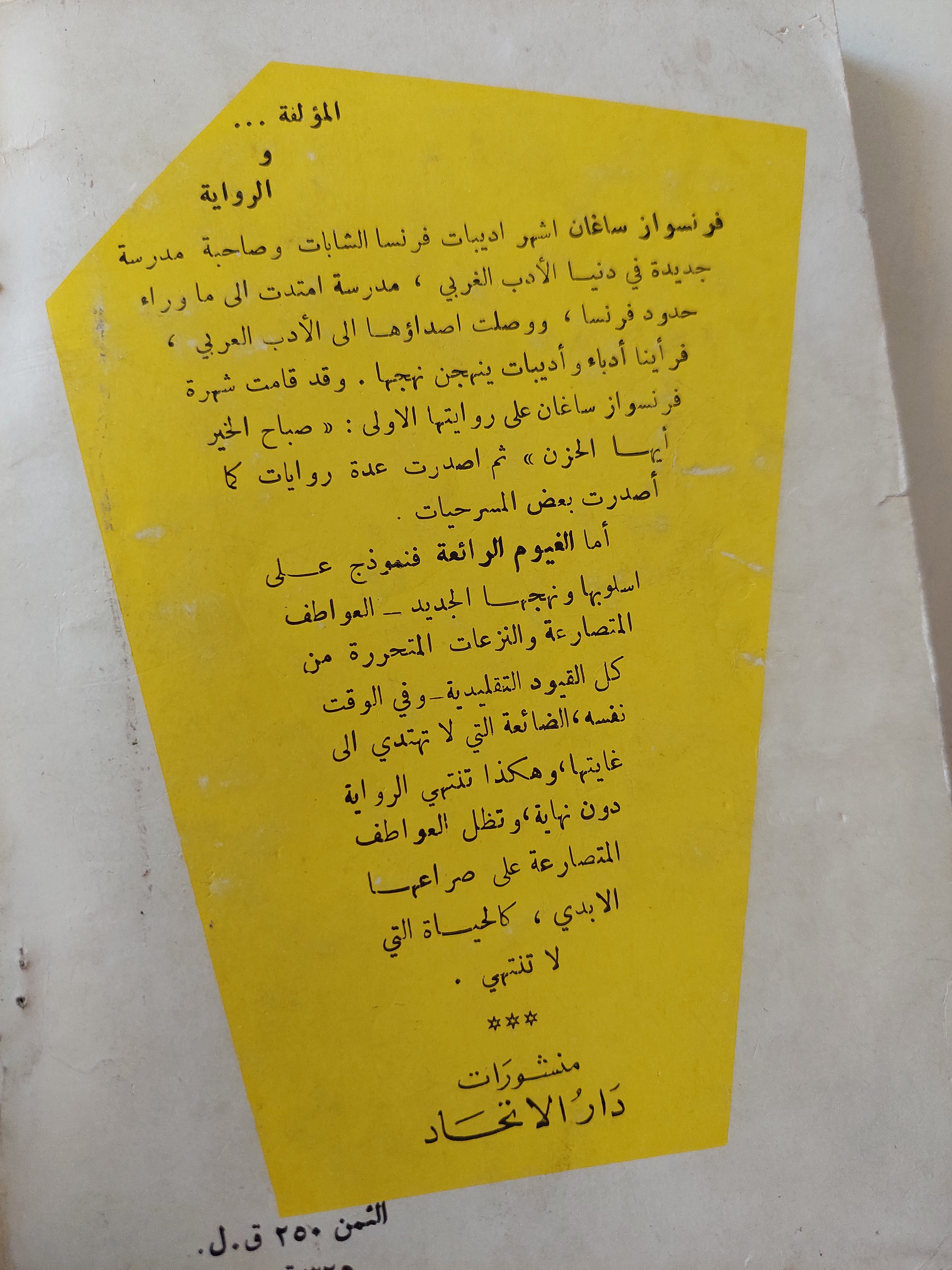 تدور أحداث الرواية حول شخصية جوزيه، المرأة الشابة التي تعيش حياة مرفهة ظاهريًا، لكنها تغوص في صراعات داخلية مع ذاتها ومع زوجها الأمريكي. ساغان تقدم بطلتها كصورة للقلق الوجودي والاغتراب النفسي، حيث العلاقات تبدو سطحية والمشاعر عابرة، لتكشف من خلال ذلك خواء المجتمع الاستهلاكي والبحث المستمر عن لذّة لا تكتمل. النص مكتوب بلغة شاعرية سلسة تتسم بالبساطة التي تخفي عمقًا نفسيًا، وهي السمة التي ميّزت معظم أعمال ساغان منذ روايتها الأولى الشهيرة Bonjour Tristesse.