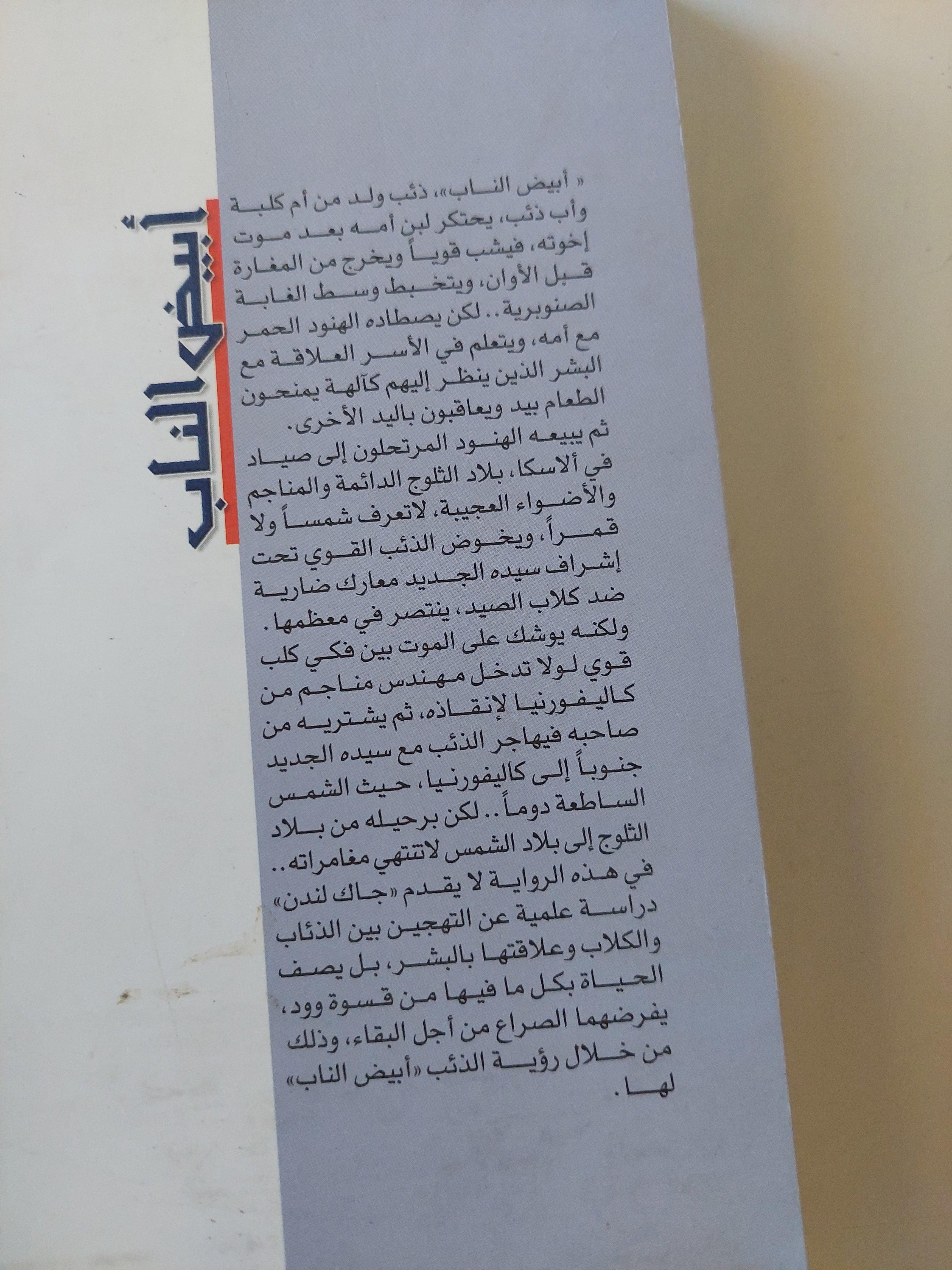 رواية أبيض الناب (White Fang) للكاتب الأمريكي جاك لندن تُعتبر من أبرز كلاسيكيات الأدب العالمي، صدرت لأول مرة عام 1906، وتُعد العمل المكمل لروايته الشهيرة نداء البرية (The Call of the Wild). تحكي الرواية عن ذئب – كلب بري يُدعى “أبيض الناب”، يرسم جاك لندن من خلاله رحلة صراع بين نوازع الوحشية وغريزة البقاء من ناحية، وبين إمكانية الترويض والتآلف مع الإنسان من ناحية أخرى.