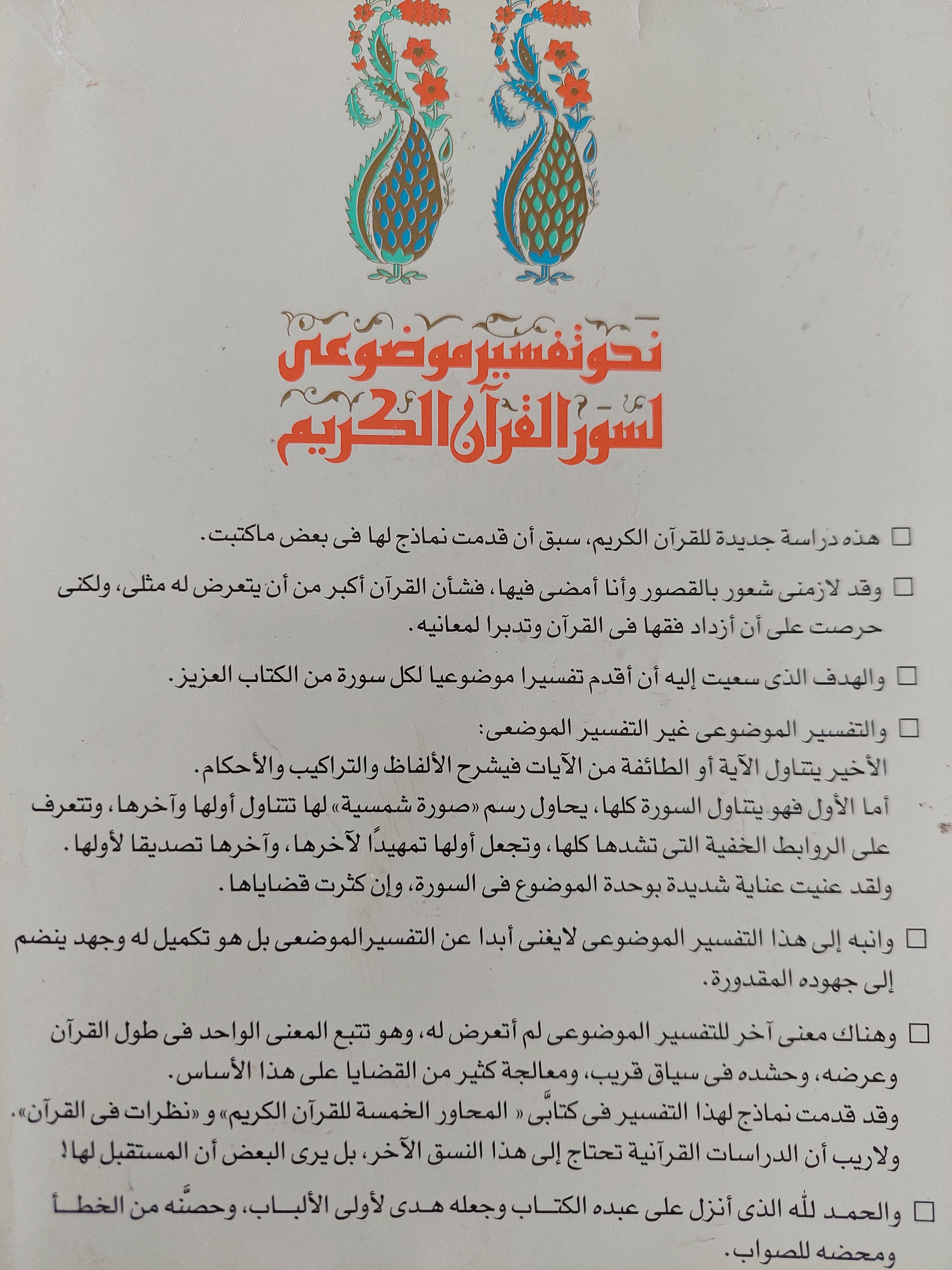 يسعى الغزالي في هذا الكتاب إلى تقديم تفسير موضوعي لكل سورة من سور القرآن الكريم، حيث يُعنى بإبراز الوحدة الموضوعية للسورة، موضحًا كيف ترتبط بداياتها بنهاياتها، وكيف تشكل السورة وحدة متكاملة في المعنى والمضمون. يُشير الغزالي إلى أن هذا النوع من التفسير يُكمل التفسير التقليدي ولا يُغني عنه، بل يُضيف إليه بُعدًا جديدًا في فهم النص القرآني .