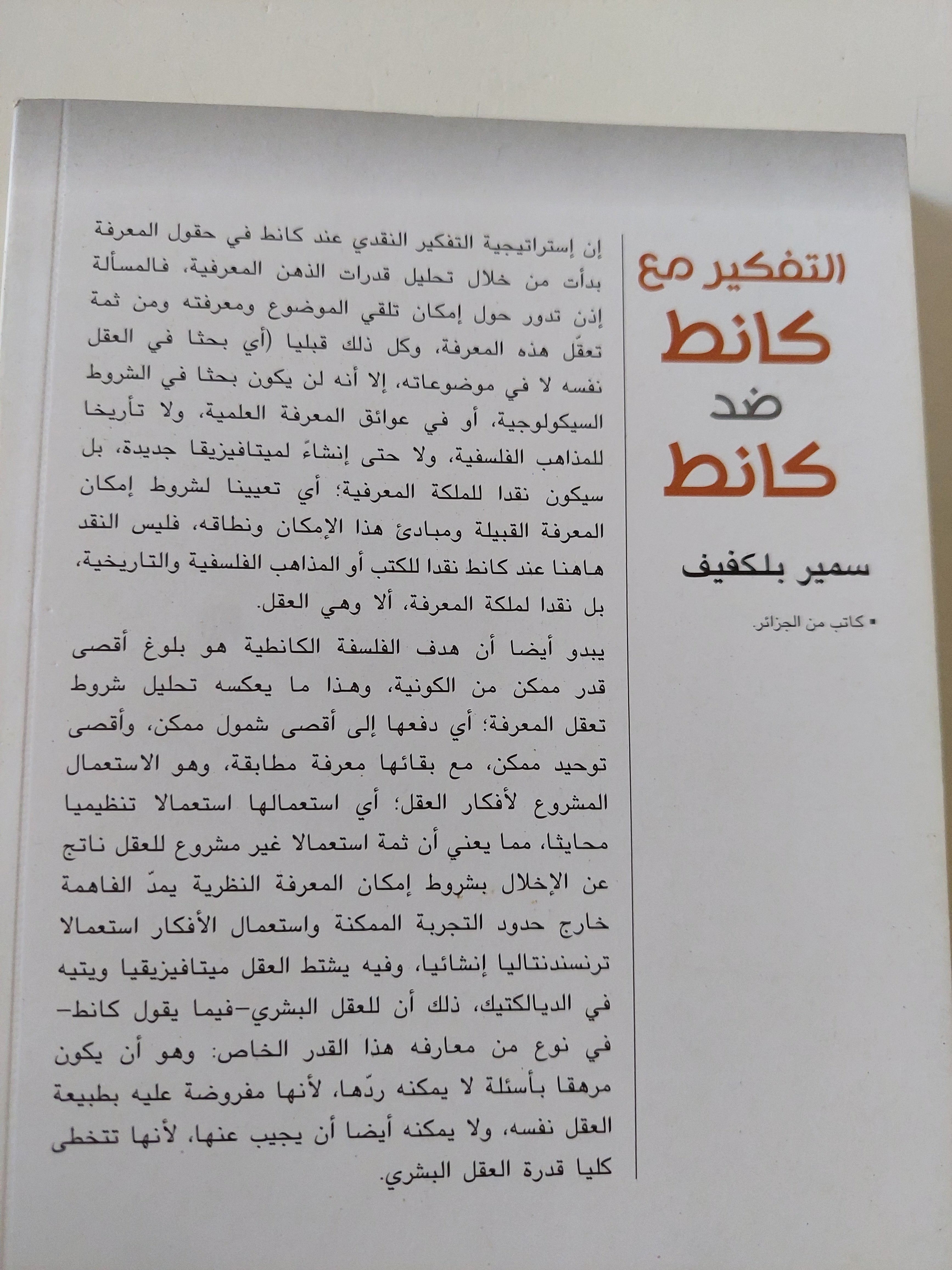يركز بلكفيف على التمييز بين “التفكير مع كانط” وـ “التفكير ضد كانط”؛ أي بين الاستفادة من المنهج النقدي الكانطي وبين الاتجاه إلى تجاوز أو نقد هذا المنهج من داخل الفلسفة المعاصرة.