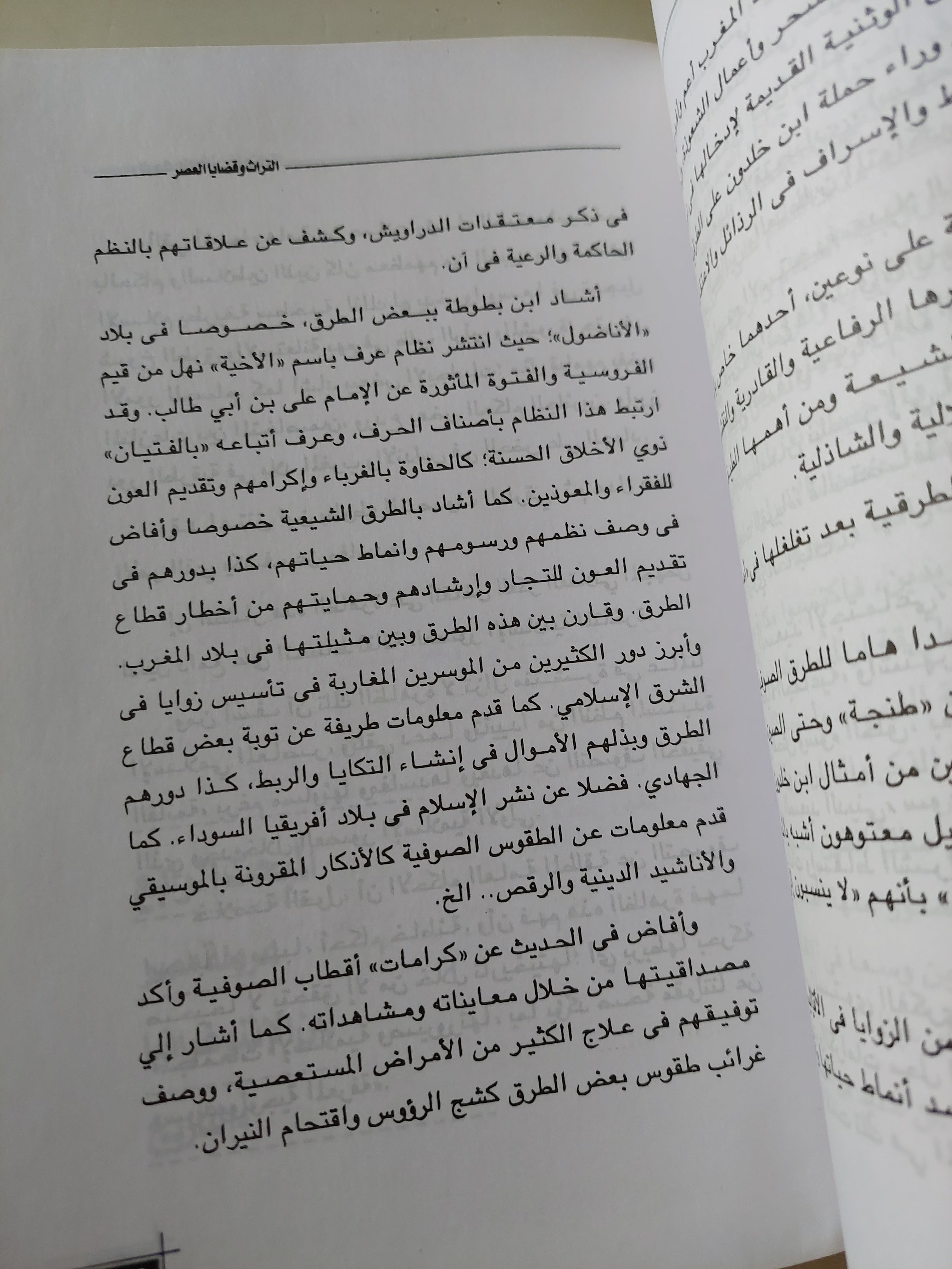 ويتطرّق كذلك إلى ظاهرة التصوف من جوانبها المختلفة: المظهر الروحي الإيجابي وما فيه من دور تربوي وأخلاقي، وكذلك بعض الممارسات التي يرى أنها خرجت عن ضوابط أو تحوّلت إلى خرافات أو ممارسات غير مسؤولة، وهو ما يحتاج تقييمًا نقديًّا.