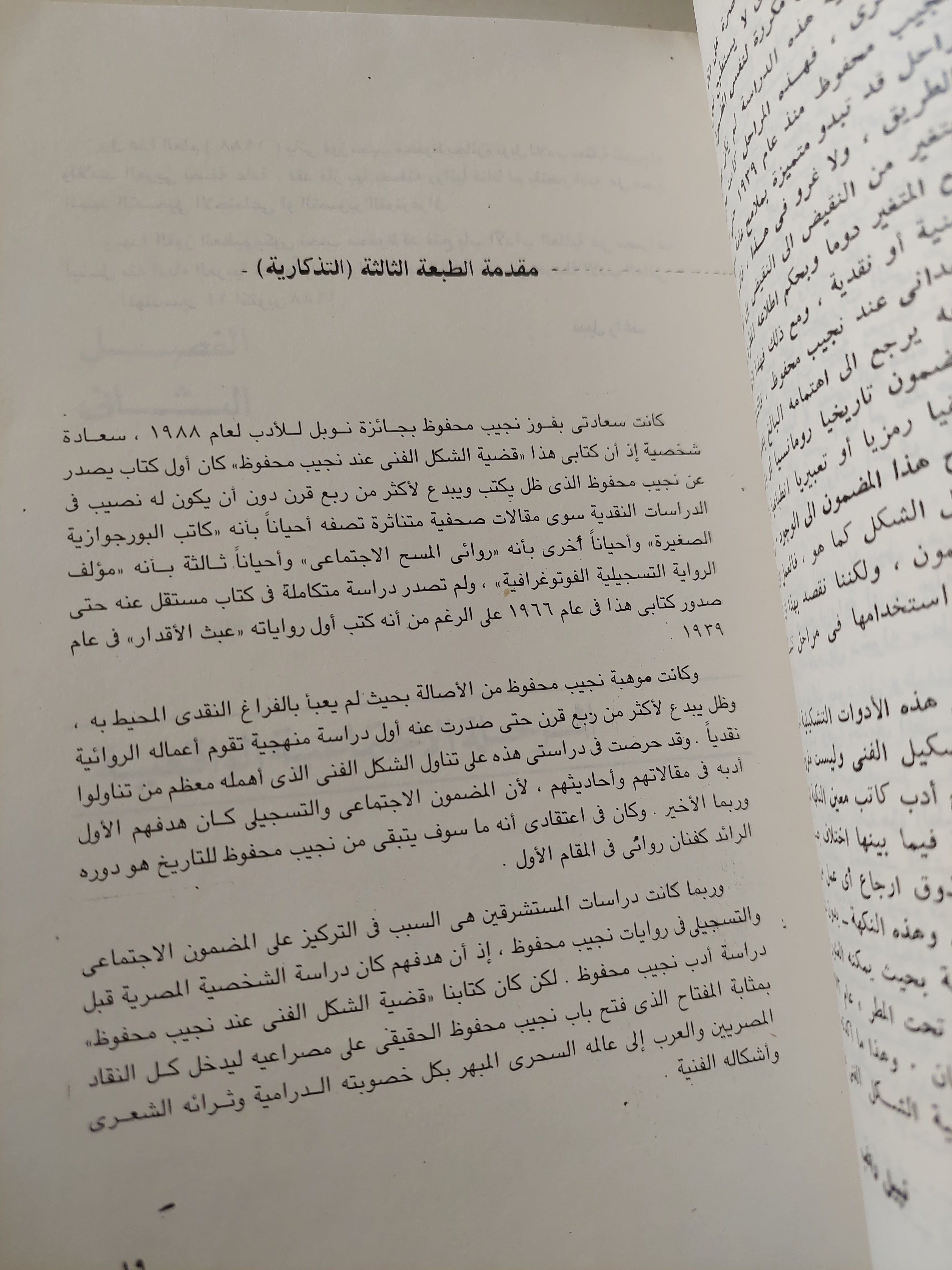 كتاب قضية الشكل الفني عند نجيب محفوظ لنبيل راغب هو دراسة نقدية معمقة حاول فيها المؤلف أن يبرز أن قيمة نجيب محفوظ لا تكمن فقط في موضوعاته الاجتماعية والتاريخية، بل في براعته الفنية وقدرته على صياغة الشكل الروائي بشكل يوازي المضمون أو يفوقه أهمية. نبيل راغب يعرض كيف أن محفوظ كان مدركًا تمامًا لأهمية البنية الفنية للرواية، فاختار أن يتعامل مع الزمن، اللغة، السرد، والشخصيات باعتبارها أدوات جمالية قبل أن تكون مجرد وسائل لنقل أفكار أو تسجيل واقع. يناقش الكتاب كيف استخدم محفوظ تقنية السرد بوعي، فتنوعت أشكاله بين الراوي العليم والراوي المشارك، وبين السرد الخطي المتتابع والسرد القائم على الاسترجاع والتقديم، مما أتاح له بناء عالم روائي أكثر ثراء وعمقًا. كما يوضح أن محفوظ كان بارعًا في توظيف الزمن، فهو لا يقدمه بوصفه خطًا مستقيمًا بل شبكة متداخلة من الماضي والحاضر والمستقبل، بحيث يُبرز من خلالها أبعاد الشخصيات النفسية والاجتماعية. ويتناول الكتاب شخصية محفوظ الروائية بوصفها كيانًا متكاملاً له أبعاده الداخلية والخارجية، فهي ليست مجرد رموز اجتماعية بل كائنات إنسانية حية تحمل تناقضاتها وصراعاتها الخاصة. ويؤكد أن محفوظ استطاع من خلال اللغة أن يوازن بين الفصحى التي تمنح العمل قيمته الأدبية، وبين العامية التي تضفي عليه واقعية وقربًا من الناس، فجاءت لغته مرنة وثرية قادرة على حمل المعنى والدلالة والإيحاء في آن واحد. يتطرق نبيل راغب أيضًا إلى كيفيات الوصف عند محفوظ، وكيف أنه استطاع أن يرسم المشاهد بدقة تجسد المكان والزمان والجو النفسي للشخصيات، ليصبح القارئ شريكًا في التجربة. ويرى أن محفوظ لم يكن تابعًا لأي مدرسة نقدية أو فنية جاهزة، بل كان واعيًا بتراثه العربي مثلما كان منفتحًا على التجارب الغربية، فخلق أسلوبه الخاص الذي جعله علامة بارزة في الرواية العربية. الكتاب في مجمله يقدم صورة نقدية تثبت أن نجيب محفوظ كان صاحب مشروع جمالي بالدرجة الأولى، وأن اهتمامه بالشكل لم يكن مجرد إطار خارجي بل جوهر رؤيته الإبداعية.