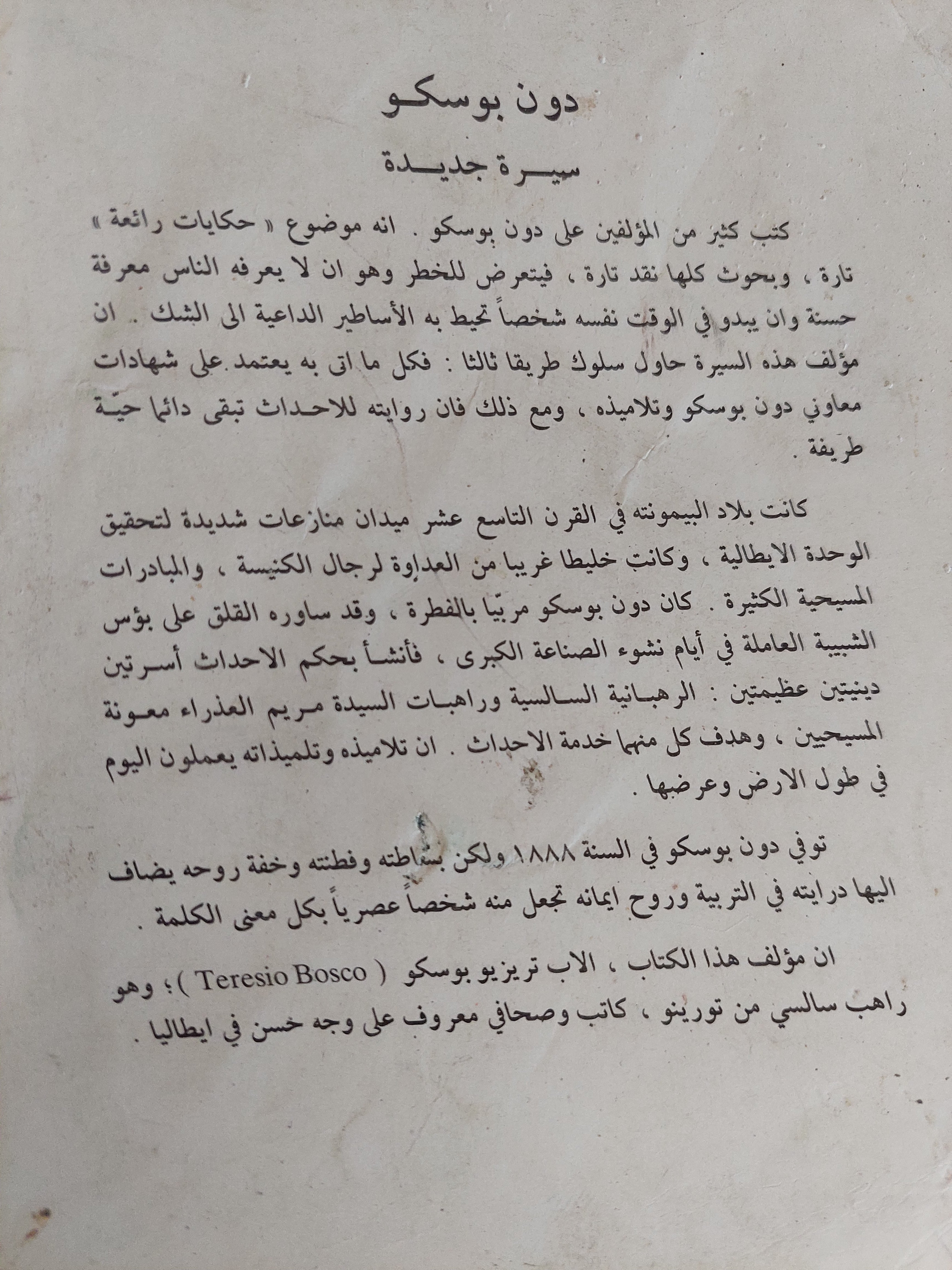 فكرة الكتاب تنطلق من أن بوسكو لم يكن مجرد رجل دين عادي، بل تجسيد حيٌّ للتربية الروحية والميدانية، رجل أخلص نفسه للشباب الفقراء والمهمشين، وسعى إلى بناء علاقة ثقة معهم قبل أي مجرد تعليم أو توجيه. إنه يقدم بوسكو كشخصية تجمع بين الحب والتضحية والمنهج العملي في الخدمة
