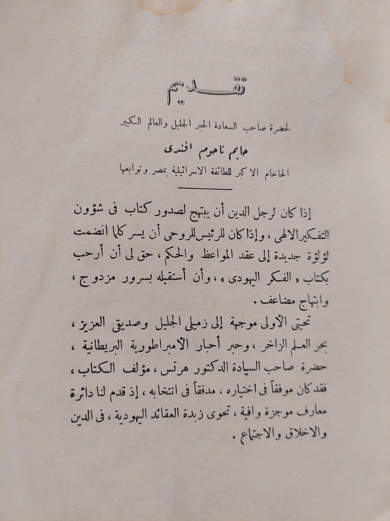 يُعد هذا الكتاب أحد الأعمال المرجعية المهمة في تقديم الفكر اليهودي للقارئ العربي، وقد نُقل بعناية فائقة من نصوص الحاخام جوزيف هيرمان هرتس (J. H. Hertz)، الذي يُعد من أبرز الشخصيات الدينية اليهودية في القرن العشرين.